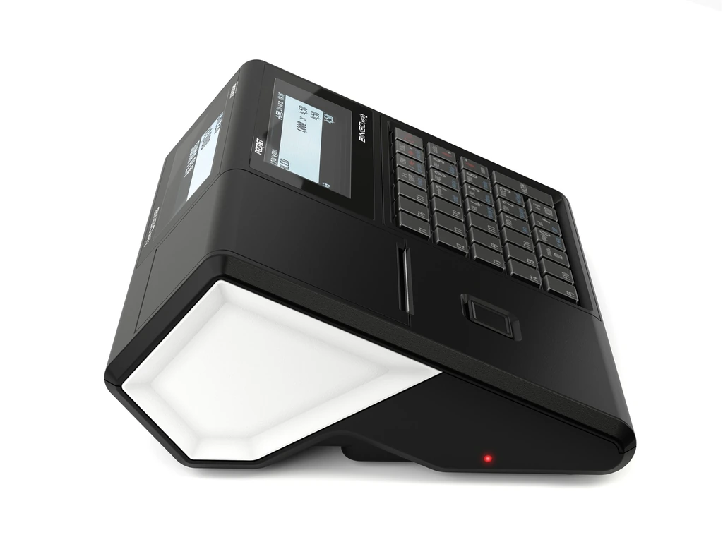 Dzięki kompaktowym wymiarom 249 × 99 × 207 mm i wadze ok. 1,4 kg, kasa nie zajmuje dużo miejsca na ladzie, a jednocześnie oferuje funkcje znane z większych urządzeń.